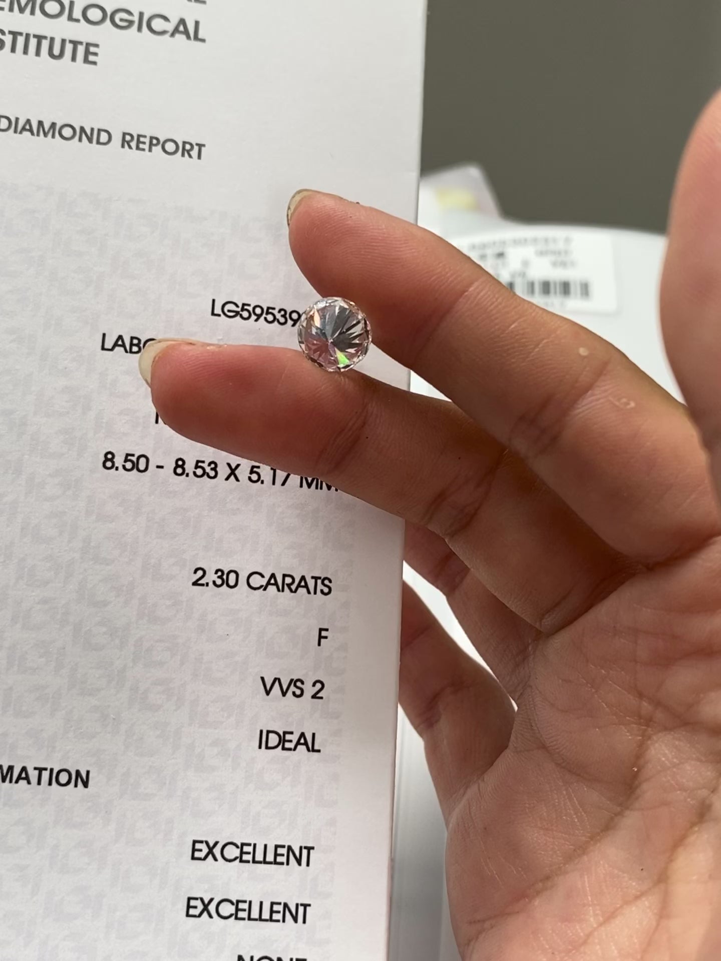 2.30 ct Round F / VVS2 Ideal Lab-Grown Diamond