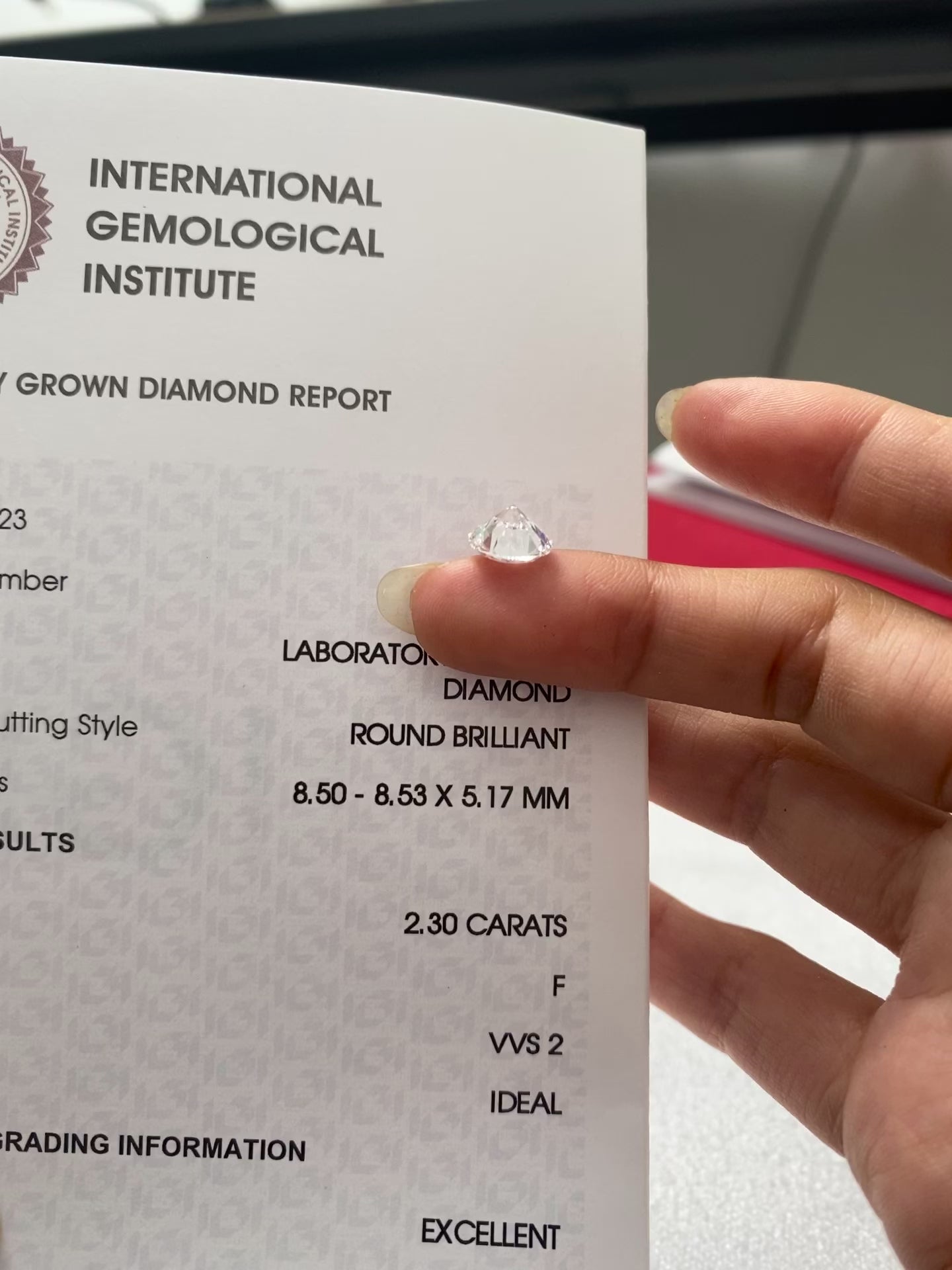 2.30 ct Round F / VVS2 Ideal Lab-Grown Diamond just 1285 usd
